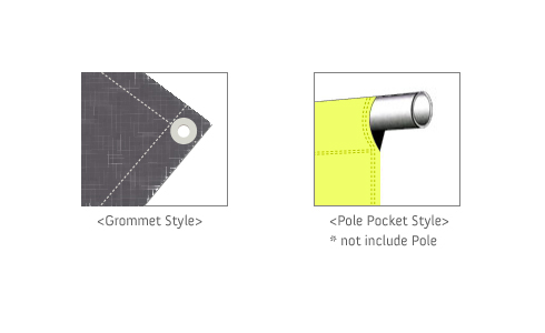 Pole Pocket's Holding Grommets: Holding grommets refers to our sliver nickel grommets placed on the edges right were the pole pocket starts. These grommets improve the strength of the pole pocket for heavier rods or poles. This option is also gives the banner the option to be hanged by the grommets when poles are not available. |